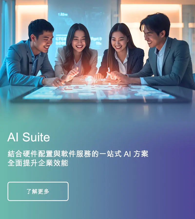 結合硬件配置與軟件服務的一站式 AI 方案,協助企業加速數據運算與分析、自動化流程、加強安全防護及提高決策效率,全面提升企業效能。