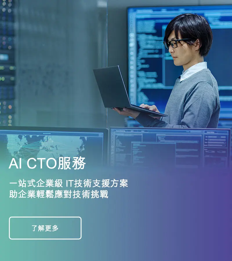有關服務以企業首席技術官(Chief Technology Officer)的專業知識與視野,為中小企提供技術支援與策略建議,並一站式企業級 IT技術支援方案,助企業輕鬆應對技術挑戰,全面提升競爭力。