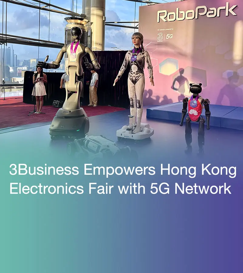 As the official 5G network partner of the Hong Kong Electronics Fair (Autumn Edition), organised by the Hong Kong Trade Development Council, 3Business delivered ultra-fast, reliable, and low-latency 5G connectivity at the Hong Kong Convention and Exhibition Centre held from 13 to 16 October.