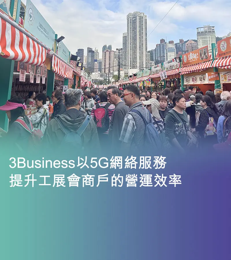 由香港中華廠商聯合會主辦的第59屆香港品牌及產品博覽(工展會)已於2025年12月13日至2026年1月5日圓滿舉行。3Business再度擔任大會的5G官方夥伴,為超過900個參展商提供高速、低時延及穩定的5G網絡服務,支援電子支付、團隊即時協作等應用,助商戶提升營運效率,縮短顧客等候時間,打造更流暢的客戶體驗。