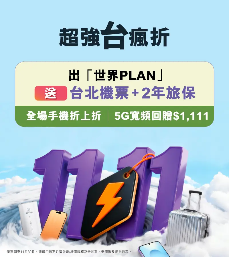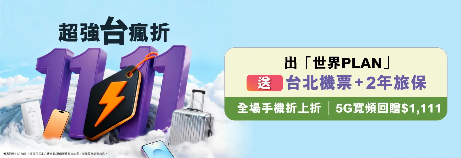 上指定世界PLAN,限時狂賞$1,111月費回贈!