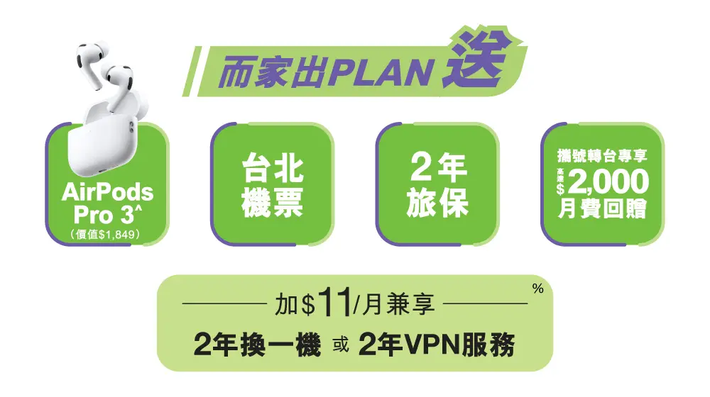優惠期至2025年11月30日。須簽指定月費計劃及/ 增值服務,須於指定地區及網絡使用。產品/ 禮品優惠限指定型號,數量有限,售/ 送完即止。優惠受條款及細則約束。