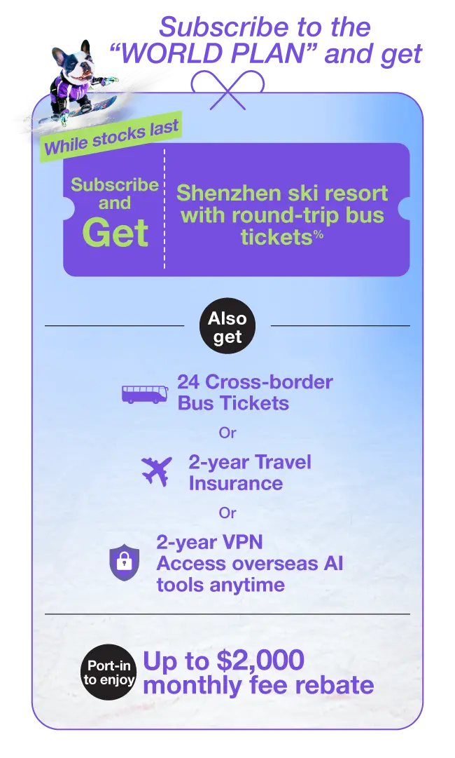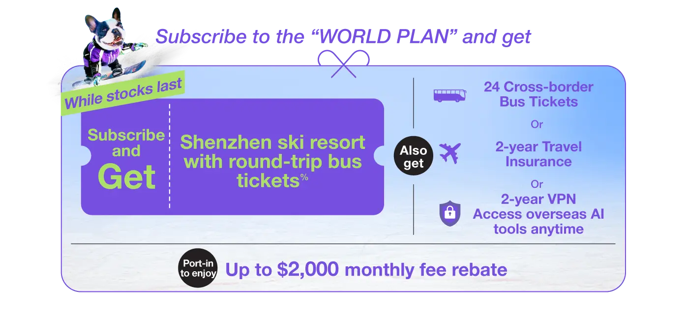 %【Shenzhen Huafa Snow BONSKI X Trans-Island Chinalink Direct Bus】Package Offer is only applicable to designated 70GB or above 5G WORLD PLAN service. Offer valid until 31 May 2026, while stock last. Apply to Terms and Conditions.