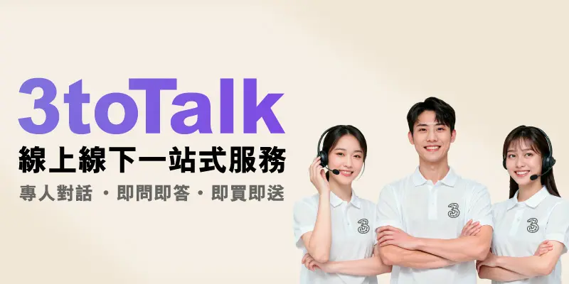 隨時透過WhatsApp聯絡「3toTalk」數碼銷售專員,無論身在何處都可以接收最新優惠資訊及查詢服務計劃內容,最快即日為你安排免費送貨。
