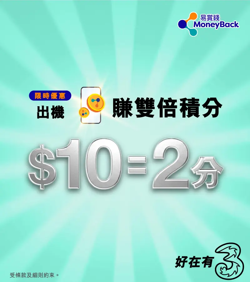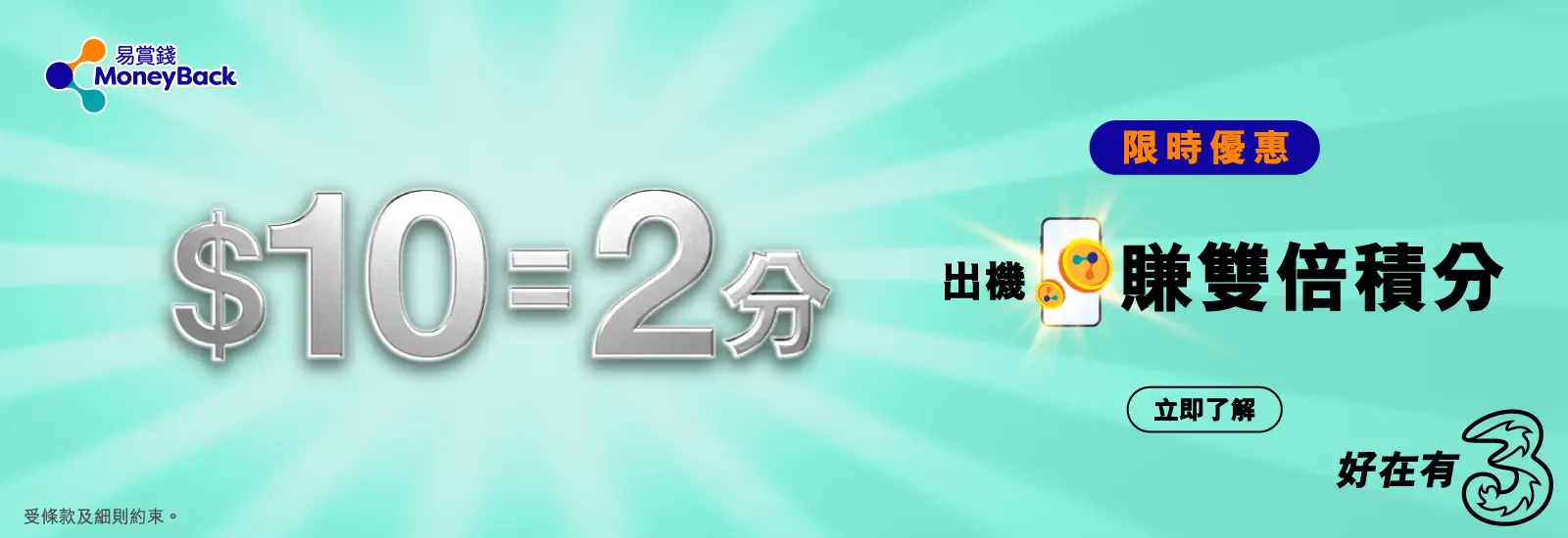 由即日起至2026年3月2日,於3Shop購買淨手機或配件,每消費$10即賺