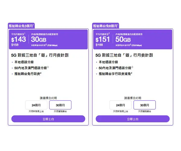 24個月 只限新號碼上台 30個月 只限攜號轉台 立即上台