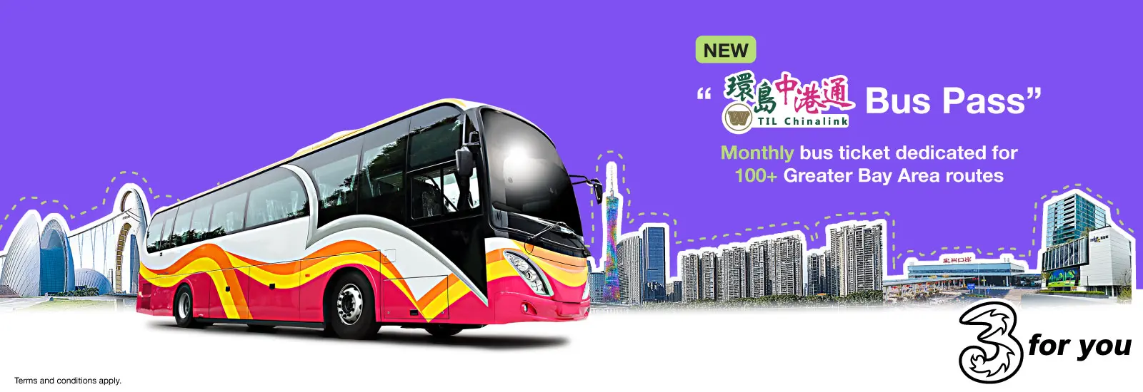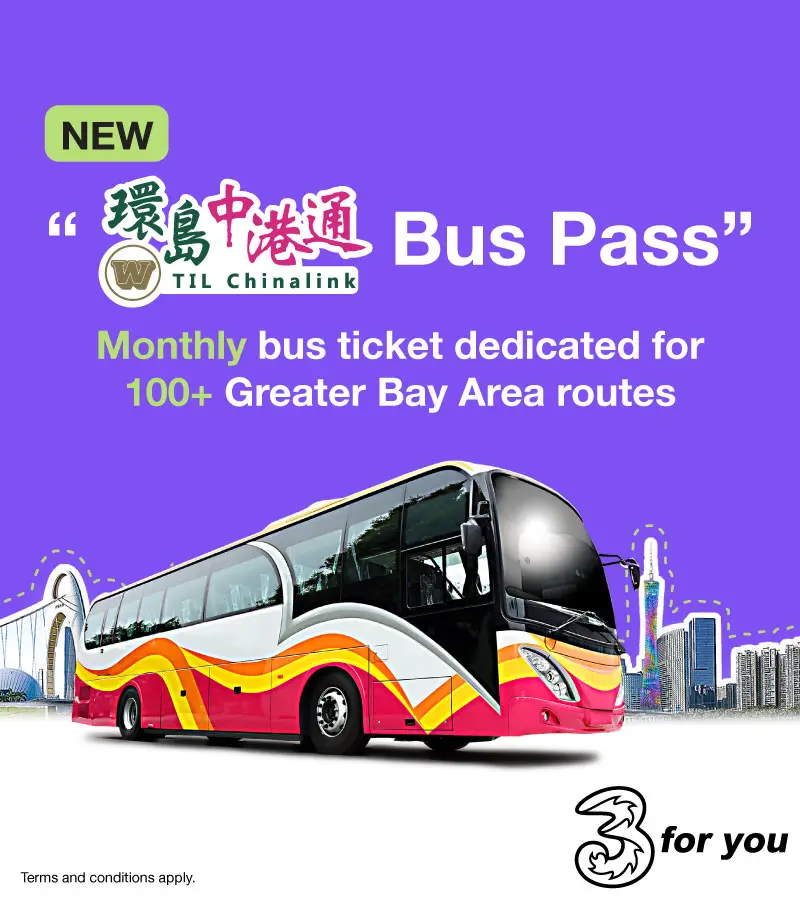 1. What is the "Trans-Island Chinalink Bus Pass"? The Trans-Island Chinalink Bus Pass is a value‑added service jointly launched by 3 Hong Kong and Trans-Islands Chinalink, offering 6‑, 12‑ and 24‑month plans. One designated one‑way cross‑border bus ticket 0‑dollar discount coupon will be issued each month for use when purchasing tickets, allowing travel on China–Hong Kong cross‑border buses at fares as low as 12% of the original price.