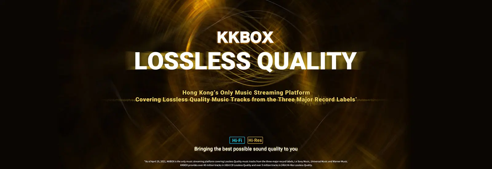 KKBOX offers a wide array of lossless music selection - over 40 million 16bit CD tracks and over 3 million 24bit Hi-Res tracks